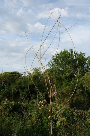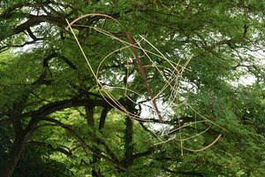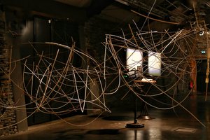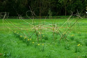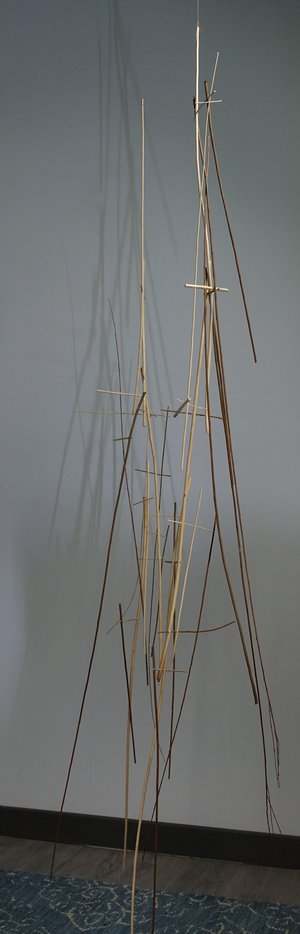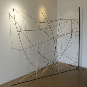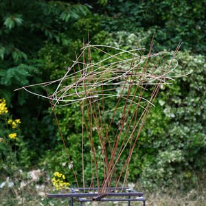 J'utilise depuis le début l'osier naturel brut ou écorcé pour des structures intérieures et l’osier autoclave pour l'extérieur. J’explore différentes formes (pièces sur socles, appliques, suspensions, mobiles, installations avec projections de lumières ou d’images) en intérieur et en extérieur. L’acier soudé est un apport esthétique et de structure. L’installation, voire la conception sur mesure font partie de cette démarche.